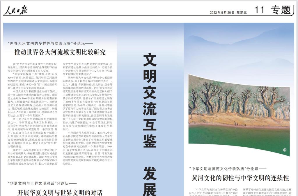 南方科技大学文化遗产研究中心教授唐际根认为,商王朝作为黄河文明的代表之一,在文字、建筑、青铜器铸造、天文历法、数学等方面体现出突出的创新性。四川省文物考古研究院三星堆考古研究所所长冉宏林介绍了三星堆遗址祭祀区的考古发掘、文物保护与多学科研究成果,他表示:“三星堆遗址展现了3000多年前的古蜀文明与中原夏商王朝的密切交流,为中华文明多元一体格局等提供了更为有力的考古实证。”湖北省文物考古研究院院长方勤介绍了周代诸侯国曾国系列墓葬的发掘与研究情况,曾国系列考古发现揭开了不存于文献的周代诸侯国曾国的神秘面纱,构建了曾国长达700余年的历史,同时也为周代诸侯国研究提供了重要的年代标尺。