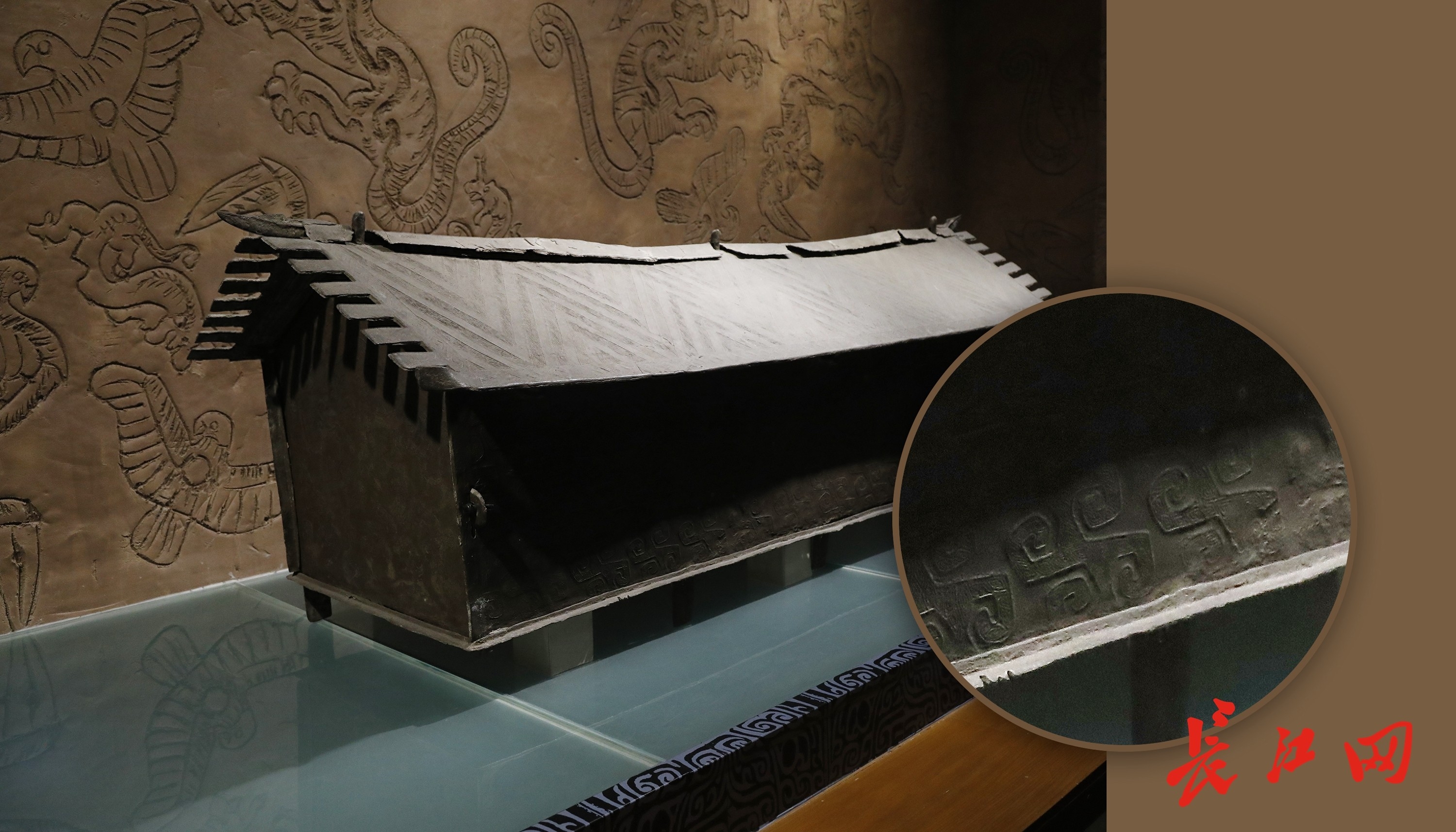 郑晓云教授介绍,铜棺外壁的回纹图案,又被称为回字纹,最初常见于新石器时代的彩陶器和商周青铜时代的青铜器上。“楚人钟爱这种由古代陶器和青铜器上的雷纹衍化来的几何纹样,其简朴凝练的风格使得青铜器祭祀利器更具有恒久、庄严、厚重的感觉。”