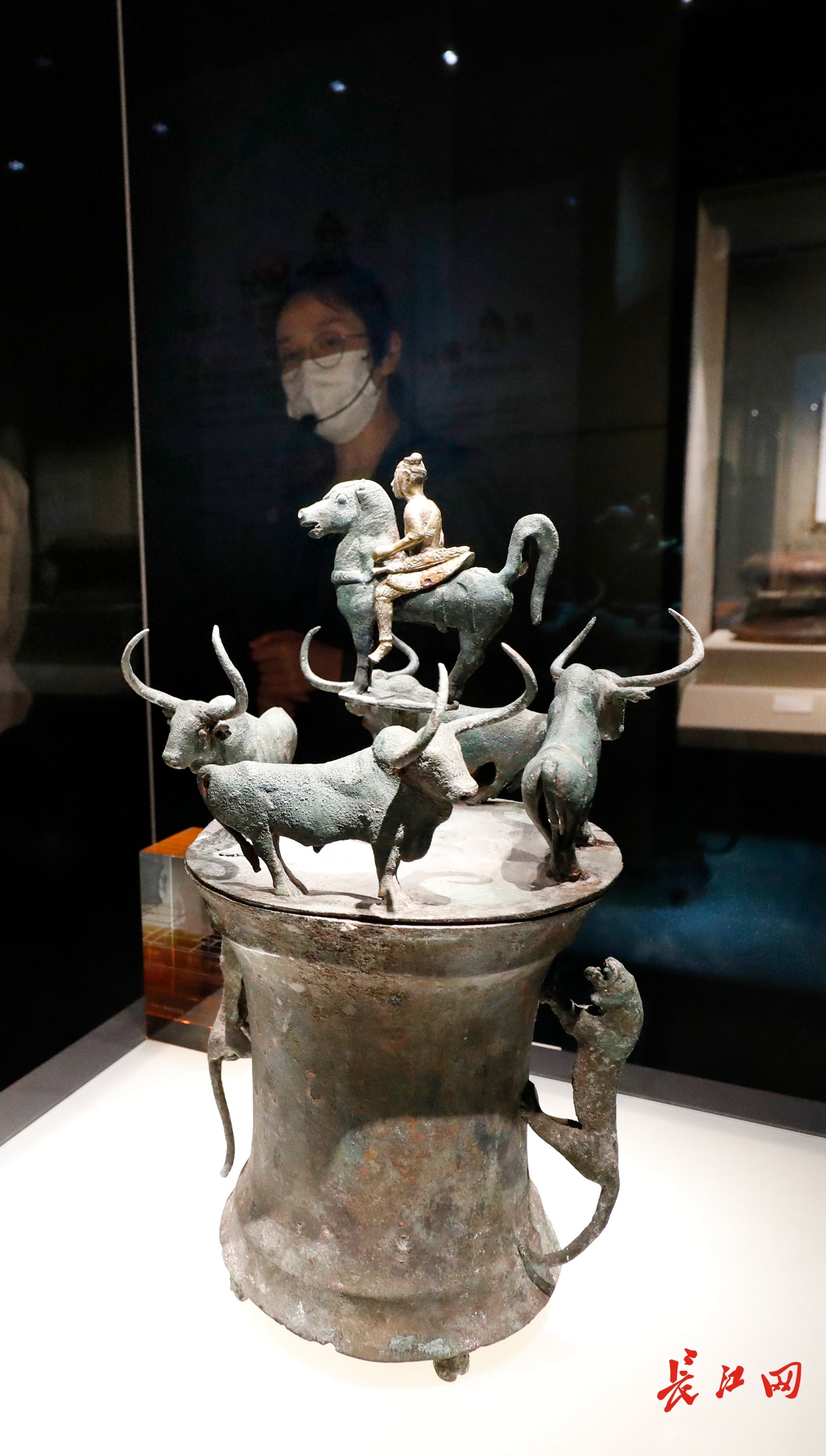造型奇特、纹饰精美的古滇国贮贝器。王筝 摄