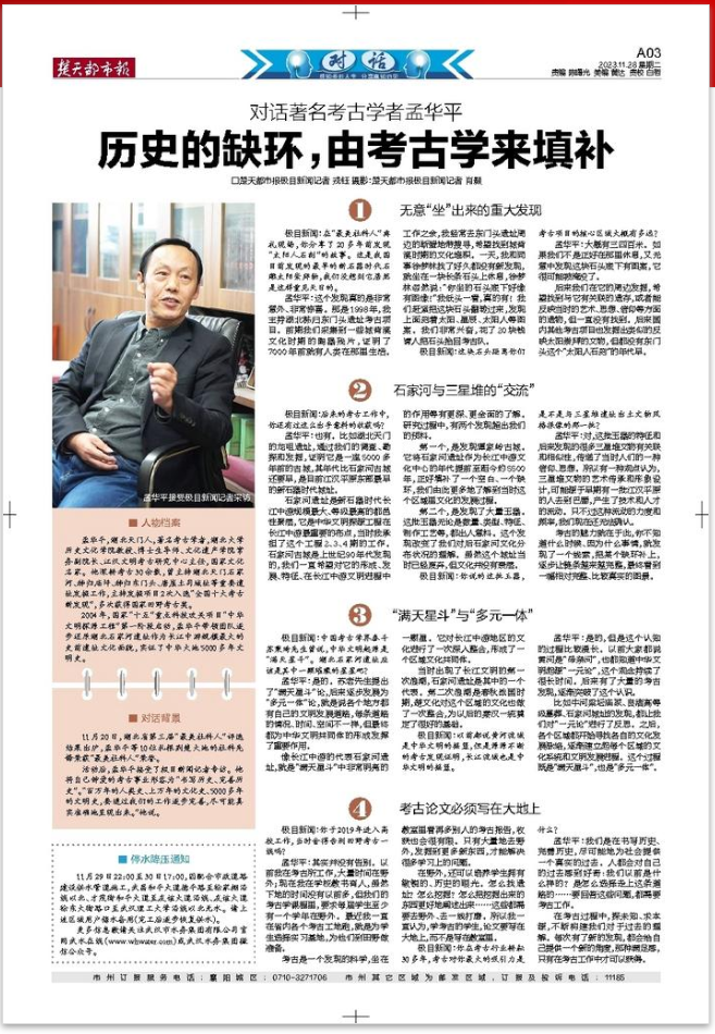 【楚天都市报】对话著名考古学者孟华平:历史的缺环,考古学来填补