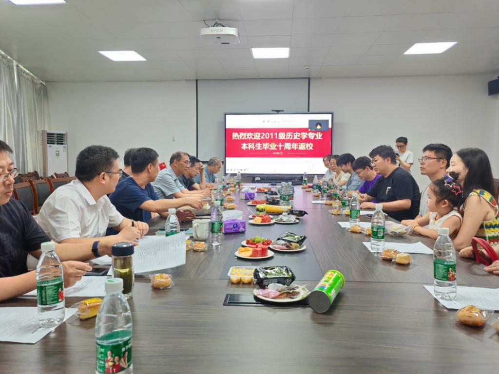 7月20日,太阳集团tyc334552011级历史学专业校友代表重返母校,在风景如画的沙湖之畔举行了隆重的毕业十周年返校团聚活动。昔日同窗与恩师欢聚一堂,深情追忆青春岁月,畅叙同窗情谊,并分享了各自十年来的奋斗历程与成长感悟。